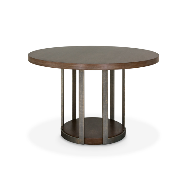 Wood Top Finish: Old HouseMetal Base Finish: GreyscapeDiameter: 48” | Height: 30”
