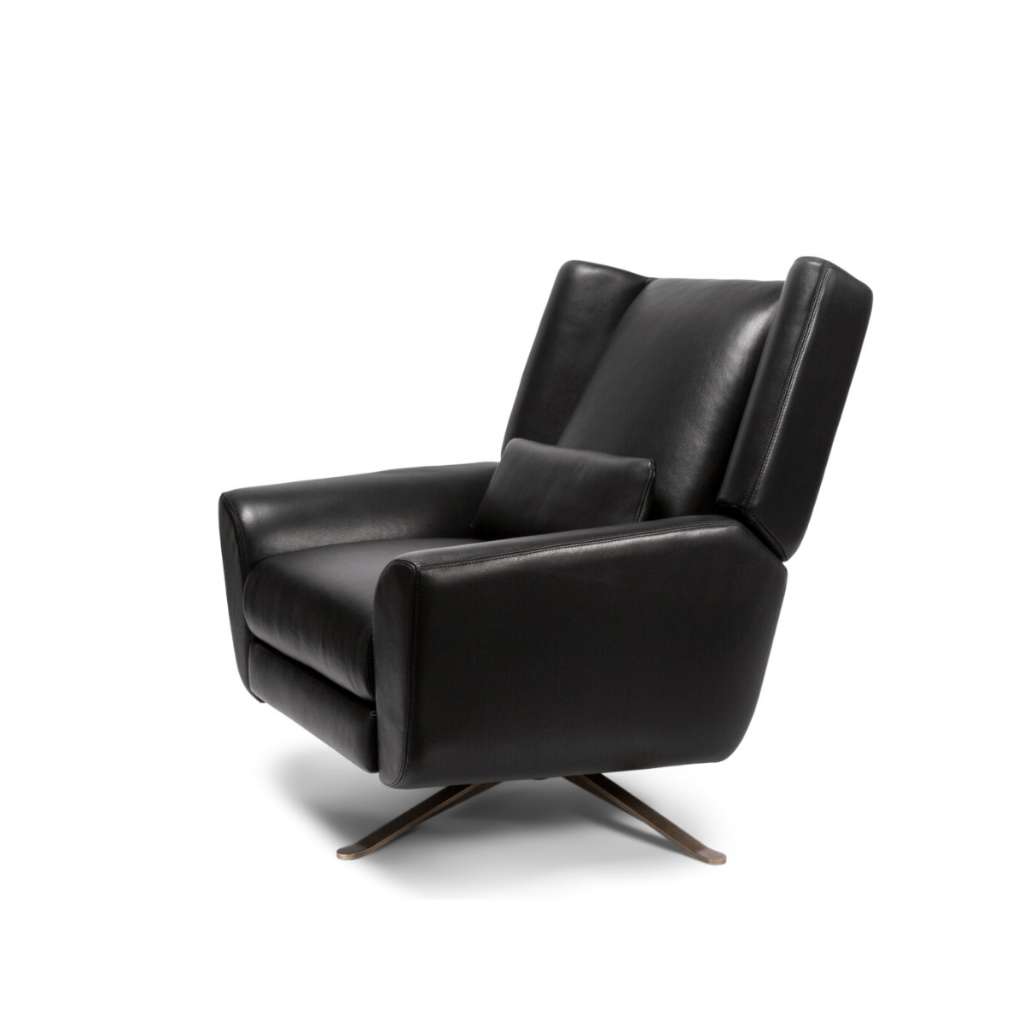 The unexpected recliner paired with unmatched comfort, create an edgy style, perfect for relaxing. The Leia features a swivel four star base available in Polished Nickel, Burnished Bronze, or Antique Brass. The Leia is the un-recliner recliner ™ a perfect blend of fashion, function, and comfort ™ without the bulk or unsightly lines of what you typically find in a recliner.