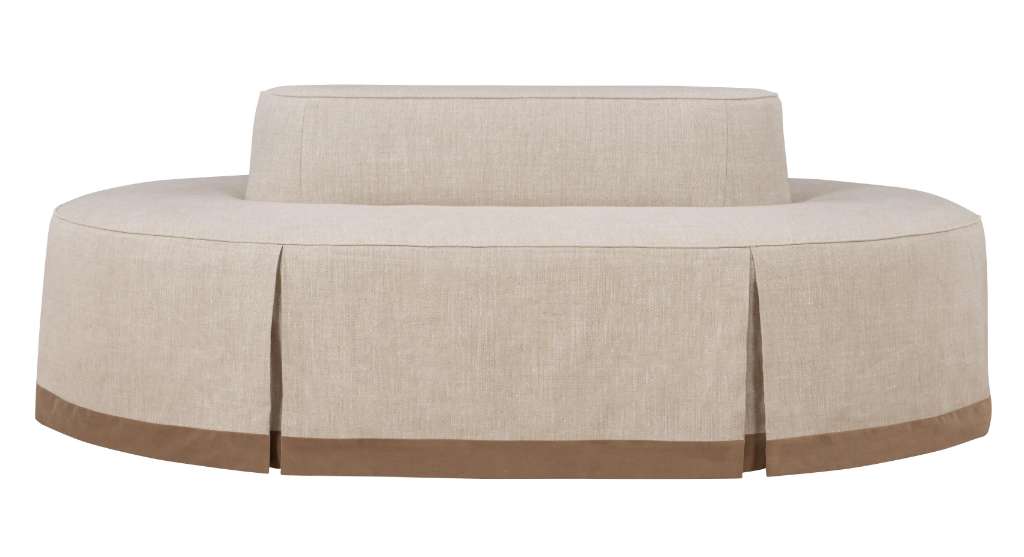 Envision the Maria Tete-a-Tete in a large walk-in closet or in a chic lounge. The Maria Tête-à-Tête offers 360 function and limitless options to customize with fabric, contrast welt and various decorative trims and border. Standard with a waterfall skirt and micro-welt.