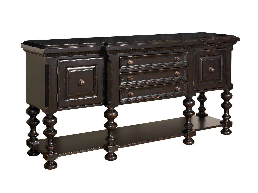 At your service in the dining room, with three felt-lined drawers and two doors that open to reveal interior storage.Dimensions: 74W x 21D x 37H in.