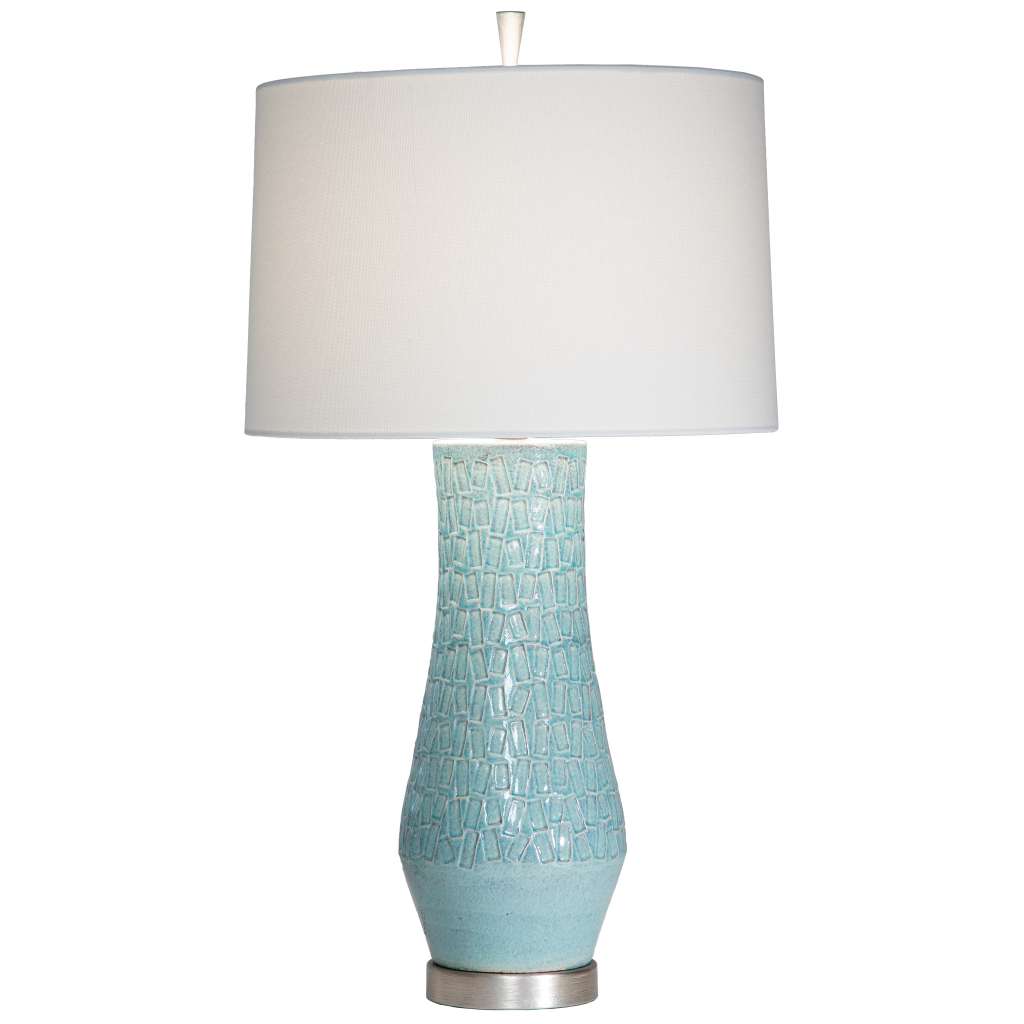 3588- ROWAN ●Aqua 31.5″H Shade: ROWAN 89015 – 16x17x11″ Rnd Drum Sailcloth White 89015 – 16x17x11″ Rnd Drum Sailcloth White