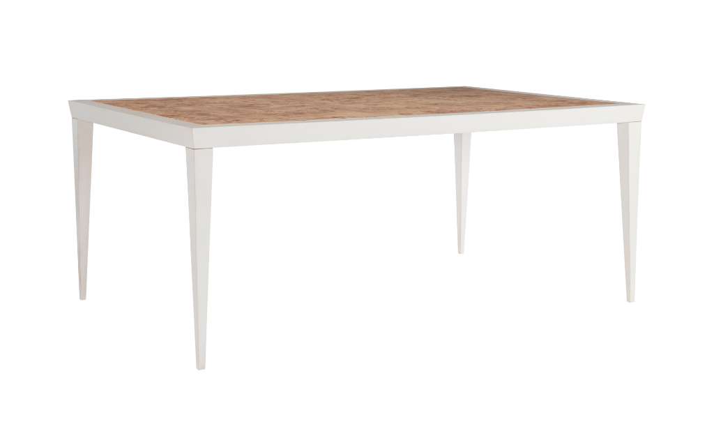 The Tessa M2M® Table series features elegant stiletto tapered legs. The top inset panel is available in a choice of 6 beautiful wood veneers including Ash, Beeswing Primavera, Walnut, Burl, Mahogany, or Maple and over 30 luxurious leathers from Hickory Chair’s Colours Leather offerings as COV®. It is available in four height options including a cocktail table, side table, dining table, and console. Made To Measure the series is available in one-inch increments from as small as 16 by 16 inches to as large as the depth to 52 inches and the width to 72 inches. Must specify table size and top inset choice along with finish selection(s). Clearance Below Rails - 27 1/2".